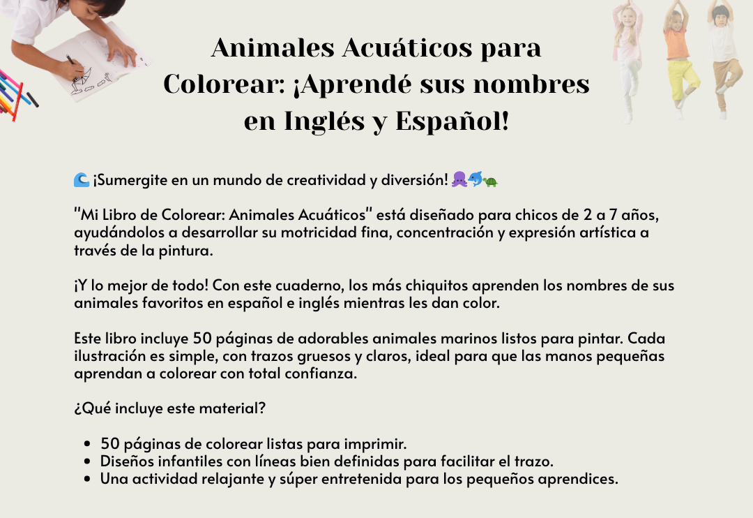 Animales Acuáticos para Colorear: ¡Aprendé sus nombres en Inglés y Español!