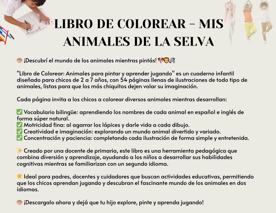 Libro de Colorear: Animales para pintar y aprender jugando - ingles/español
