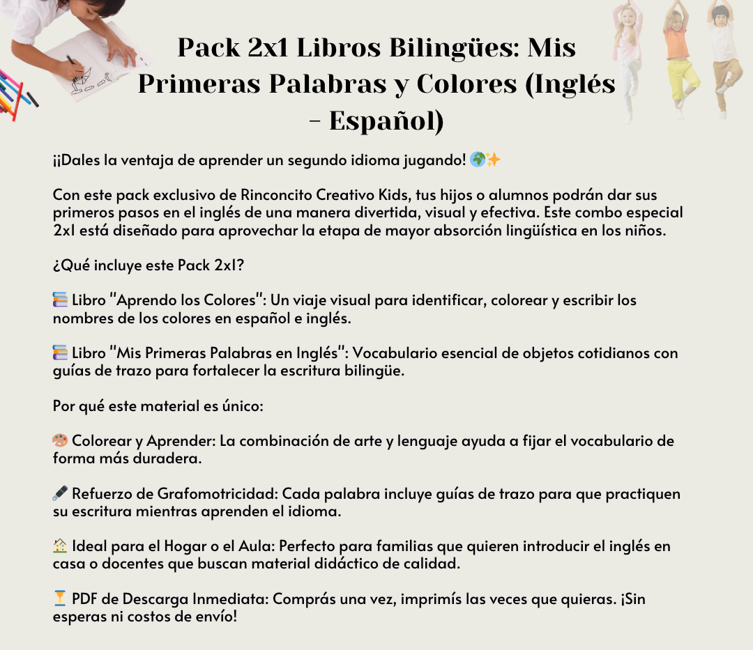 Pack 2x1 Libros Bilingües: Mis Primeras Palabras y Colores (Inglés - Español)